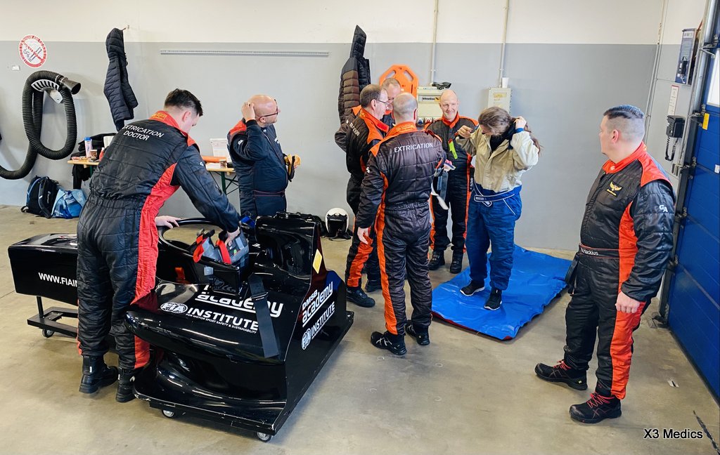 Vom 1.-3.3.2024 fanden erneut die Medical Days in der Motorsportarena Oschersleben statt. Unser Team hat sich dabei auf den neuesten Stand zum Thema Elektrische Rennserien und die Rettung der Fahrer aus einem Fahrzeug dieser Kategorie gebracht. Nach einem Theorieteil ging es zum Üben und anschließend zur Zertifizierung an zwei BMW M4 vom Team Schubert, an einen LMP 3 vom Team Konrad Motorsport, an einen Elektro Mini aus dem Nxt Gen Cup und an das F1 Chassis (vielen Dank für die Organisation der Fahrzeuge und das Chassis)!