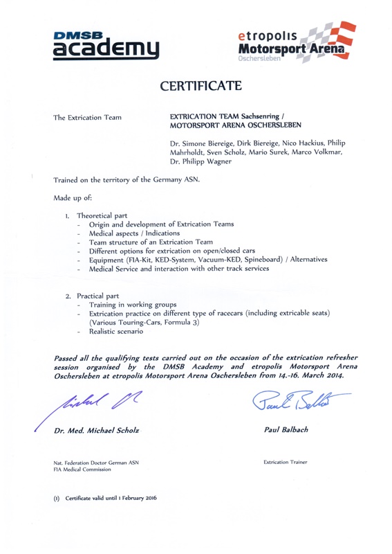 2015: DMSB/ FiA Extrication Team